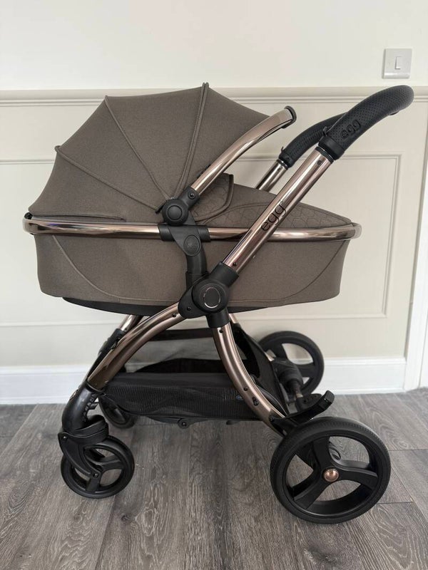 Here we have the luxury Egg 3 travel system in Hunter Green. The deep green fabrics on the bronze frame makes this system so luxurious. The set is in excellent condition with very minor wear. The bundle will be deep cleaned upon sale β¨