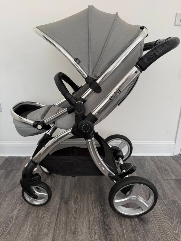 Here we have the stunning Egg 2 bundle in Monument Grey. This pram is absolutely beautiful with the chrome frame and light grey fabrics. This set is in very good condition but being preloved this does have some minor scratches, please ask for photos. The set will be fully deep cleaned upon sale ✨